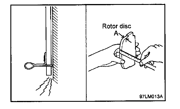 NOTE: If a squealing or scraping noise occurs from the brake during driving, check if the pad wear indicator is contacting the disc. If it is, the brake pads should be replaced.