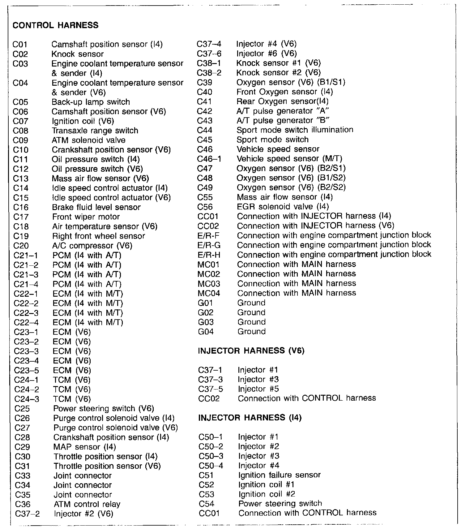 Control Harness Index: