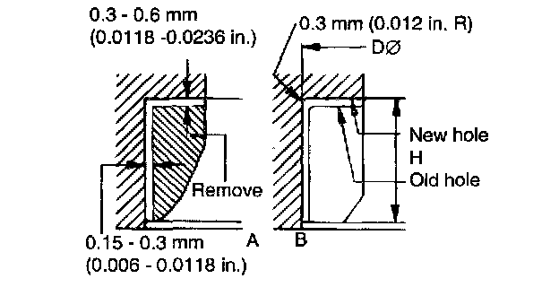 2. Check each valve for wear, damage and distortion of the head and the stem at B Position. Replace, if necessary. If stem end, A, is hollowed out or worn, resurface as necessary. This correction must be limited to a minimum. Also resurface the valve face.