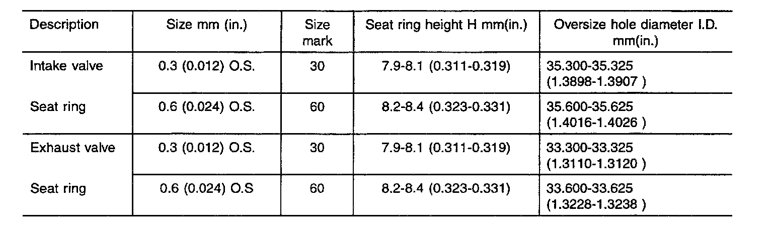 Valve seat contact width: 0.9 - 1.3 mm (0.035 - 0.051 inch)