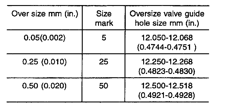 Check the valve stem-to-guide clearance. If the clearance exceeds the service limit, replace the valve guide with the next oversize part.