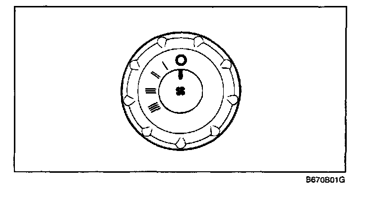 This is used to turn the blower fan on and off and to select the fan speed. The blower fan speed, and therefore the volume of air delivered from the system, may be controlled manually by setting the blower control between the "1" and "4" position.