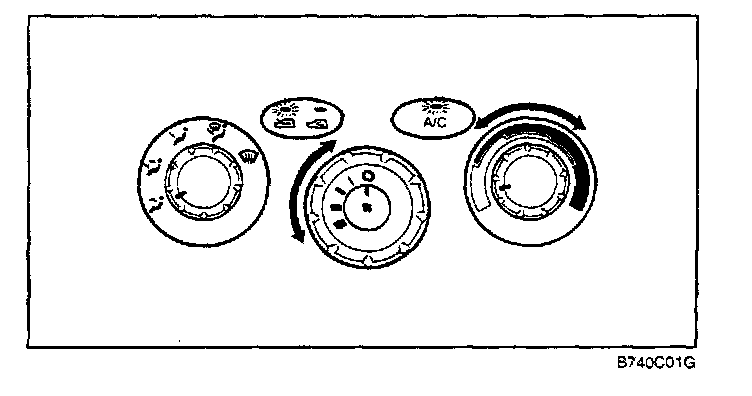 - Turn on the air conditioning switch. The air conditioning indicator light should come on at the same time.