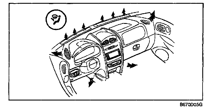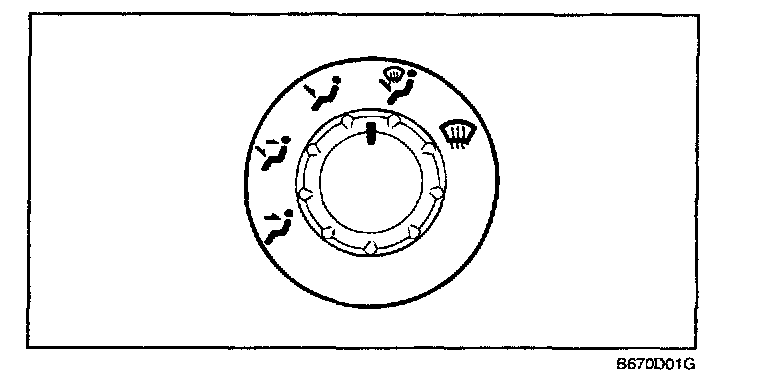 AIR FLOW CONTROLThis is used to direct the flow of air. Air can be directed to the floor, dashboard outlets, or windshield. Five symbols are used to represent Face, Bi-Level, Floor, Floor-Defrost and Defrost air position.