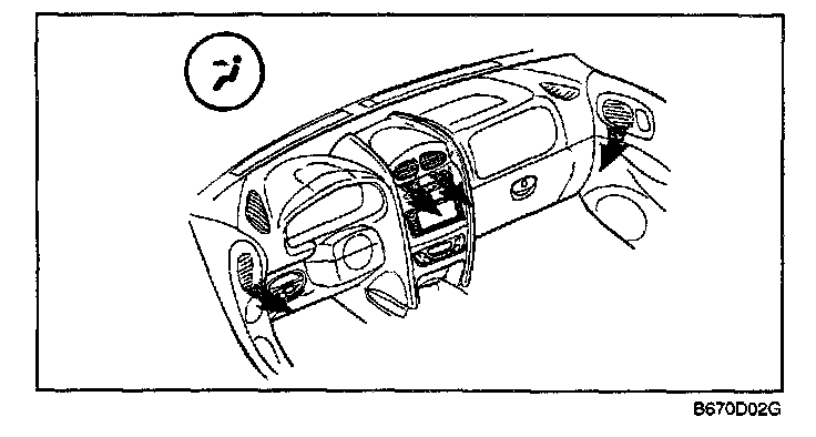Air is discharged through the face-level vents and the floor vents. This makes it possible to have cooler air from the dashboard vents and warmer air from the floor outlets at the same time.