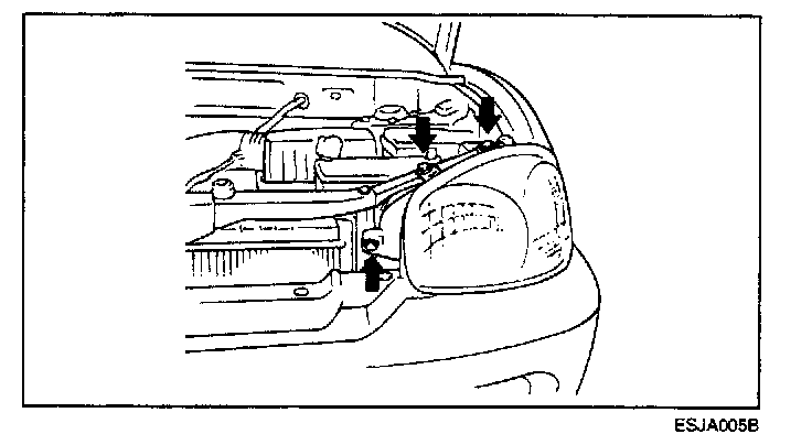 1. Disconnect the negative battery terminal.2. Remove the head lamp mounting bolts and remove the head lamp assembly.