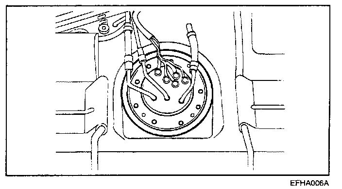 2. Raise the vehicle and disconnect the fuel pump connector, then remove the fuel feed and return line from the fuel pump assembly.
