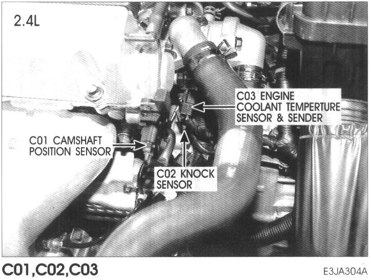C01 Camshaft Position Sensor, C02 Knock Sensor, C03 Engine Coolant Temperature Sensor And Sender: