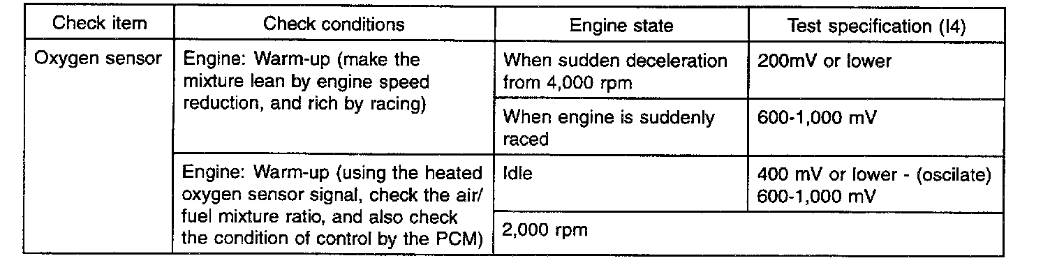 2. If the HO(2)S check results are normal, but the sensor output voltage is out of specification, check for the following items (related to air fuel ratio control system):