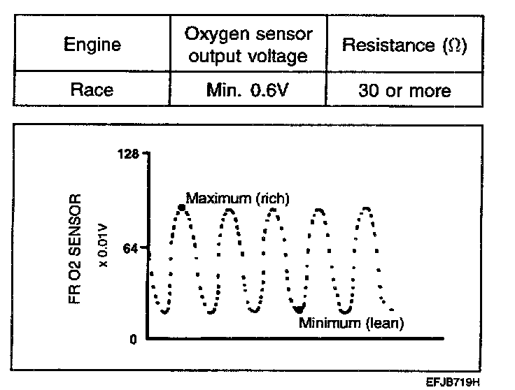 5. While repeatedly racing the engine, measure the oxygen sensor output voltage.