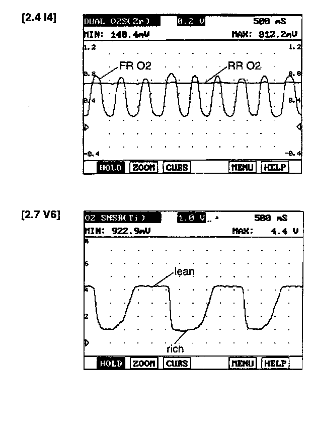 FR O(2) and RR O(2) sensor may increase immediately after depressing the accelerator pedal and may decrease after releasing the pedal.