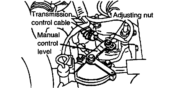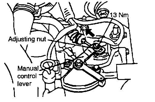 2. Loosen the control cable to the manual control lever coupling nut to free the cable and lever.