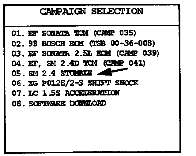 18. Select option "05. SM 2.4 STUMBLE" and press ENTER.