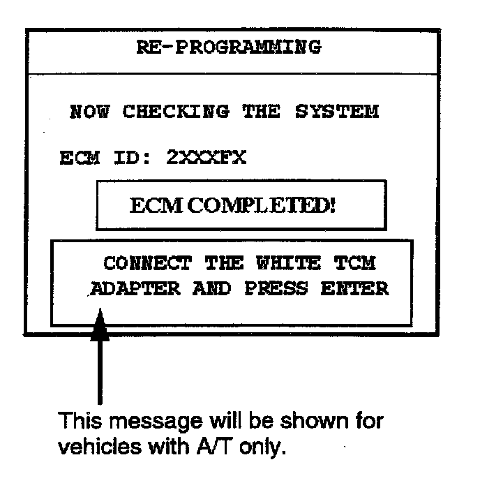 30. When the "ECM & TCM COMPLETED" message is displayed, the TCM reprogramming process is finished.