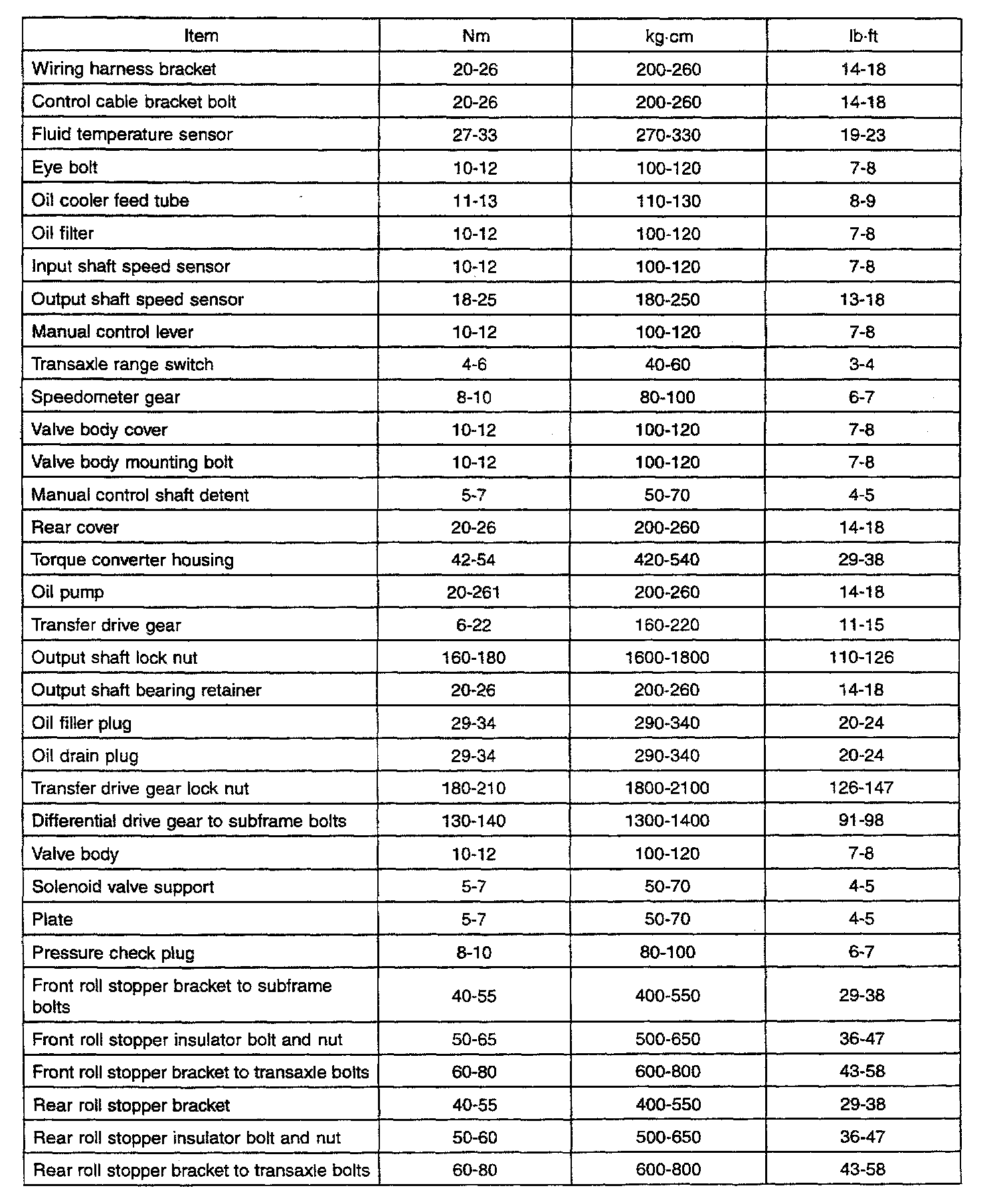 F4A51 4-spd A/T, Transaxle/Transfer/Differential Torque: