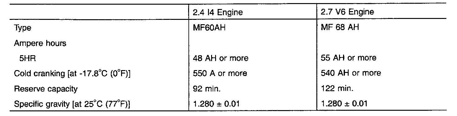 NOTE: COLD CRANKING AMPERAGE is the amperage a battery can deliver for 30 seconds and maintain a terminal voltage of 7.2 or greater at a specified temperature. RESERVE CAPACITY RATING is the amount of time a battery can deliver 25A and maintain a minimum terminal voltage of 10.5 at 26.7 °C (80 °F).