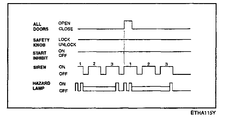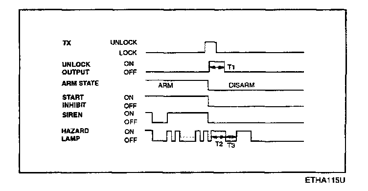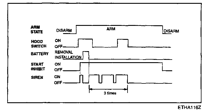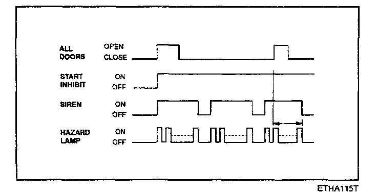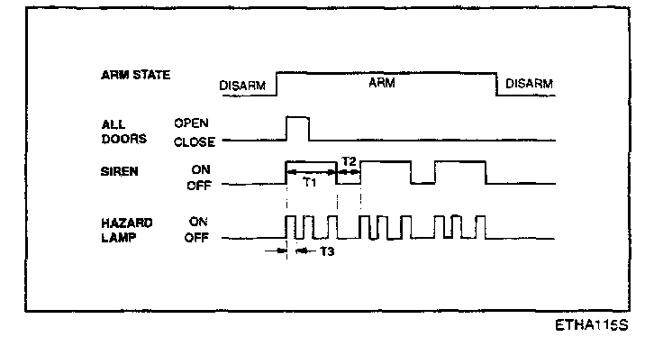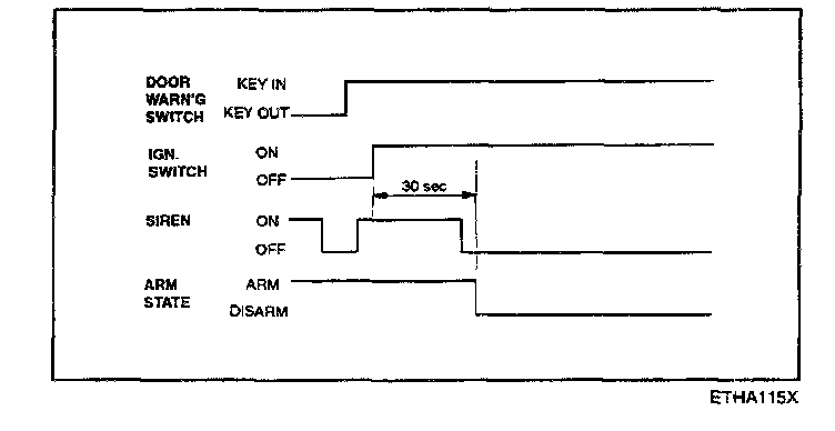 f. Disarmed after 30 sec when the ignition switch is turned on while the alarm is sounding.