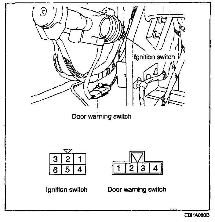 1. Separate the connector located under the steering column.2. Inspect the switch continuity between the terminals.