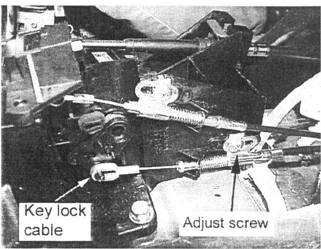 5. Loosen the adjusting screw and move the key lock cable until the shift lever can be moved from the "Park" position. Tighten the adjusting screw.