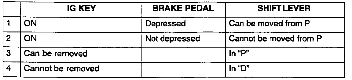 6. Release the brake pedal and confirm the shift lever cannot be moved from the "Park" position.
