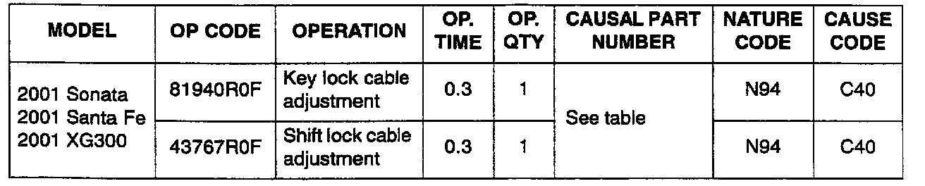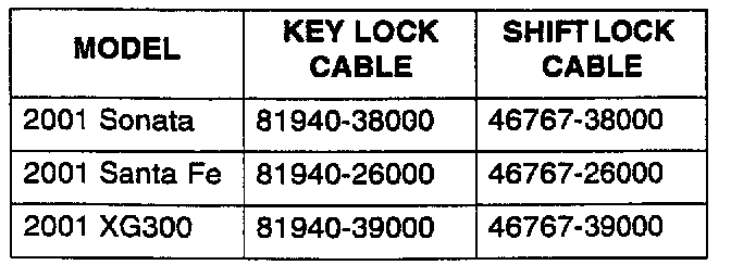 The procedure for adjusting the automatic transaxle shift lock cable and key lock cable has been modified for vehicles with Sport Shift. For vehicles without Sport Shift, refer to TSB 01-40-008. If the key lock and shift lock do not operate as described in this bulletin, follow the appropriate adjustment procedure.