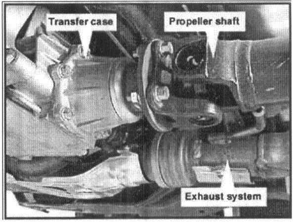 5. Disconnect the propeller shaft at the transfer case connection.
