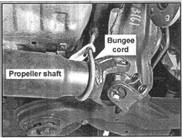 6. Support the propeller shaft with a bungee cord. (Attach bungee cord to stabilizer bar).
