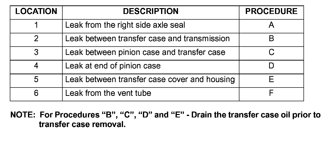 TRANSFER CASE OIL LEAK DIAGNOSIS