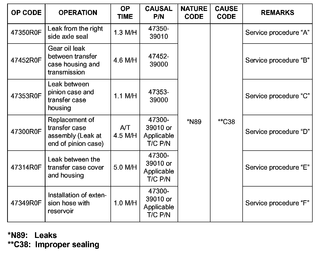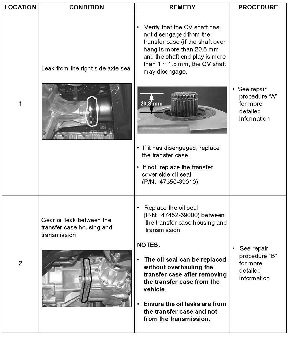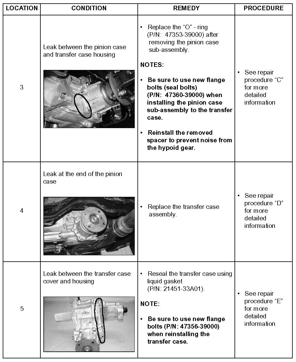 This bulletin provides diagnostic information, repair procedures, parts information and labor time information to service transfer case oil leaks.