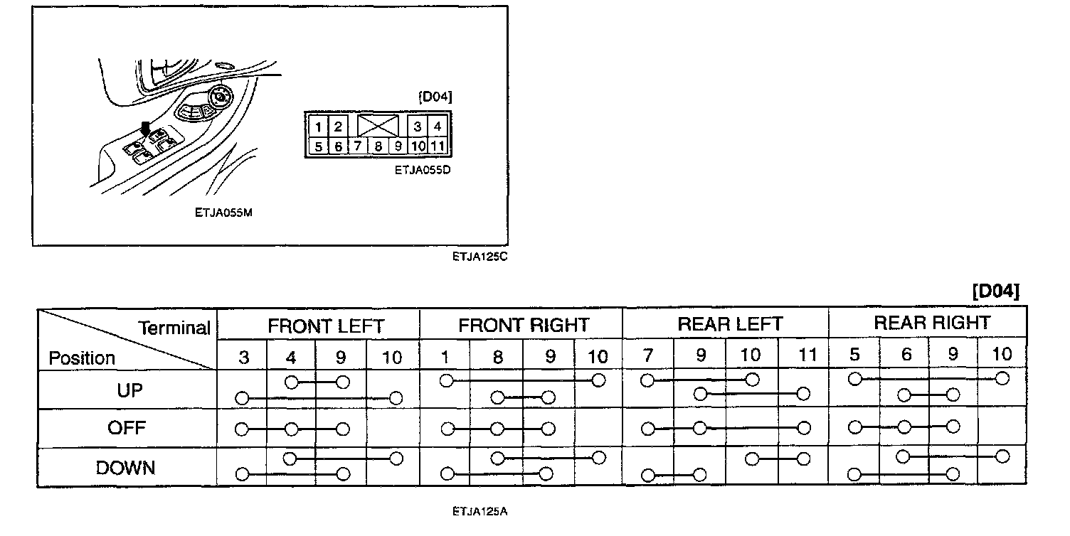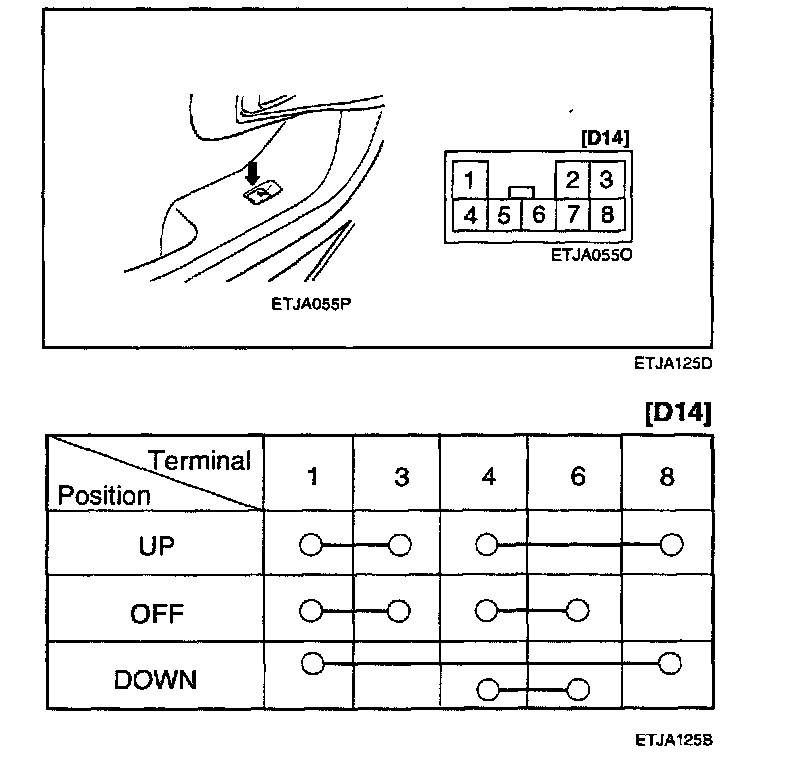 Check for continuity between the terminals. If continuity is not as specified in the table, replace the