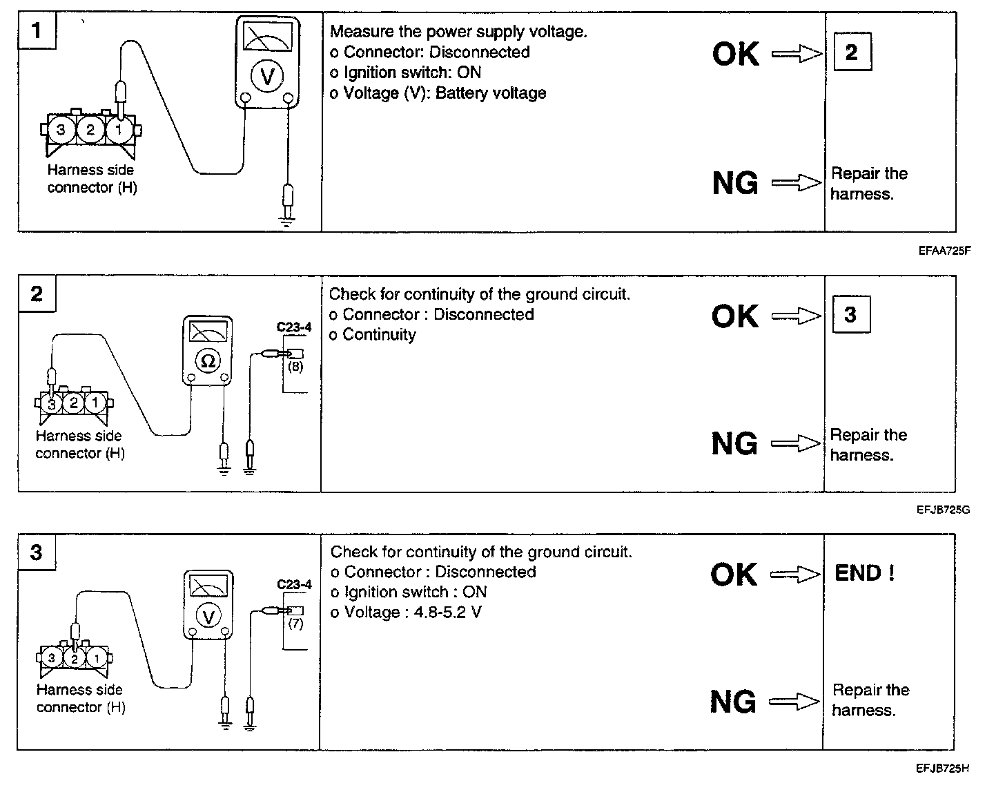 1. If unexpected shocks are felt during driving or the engine stalls suddenly, shake the crankshaft position sensor harness If this causes the engine to stall, check for poor sensor connector contact.