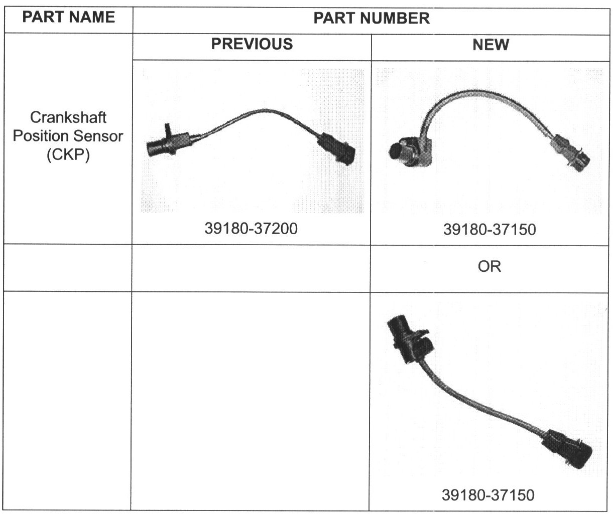 Some 2001 and 2002 SANTA FE vehicles with 2.7L V6 engines require replacement of the Crankshaft Position (CKP) Sensor.