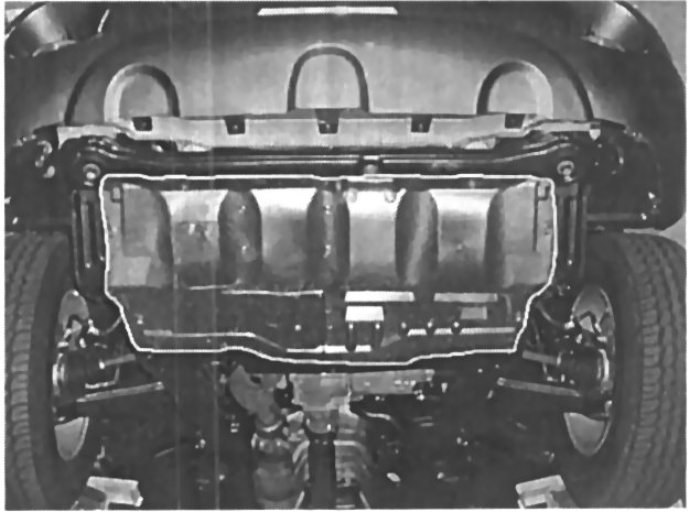 3. Lift up the vehicle. Remove the front skid plate (12 mm socket).
