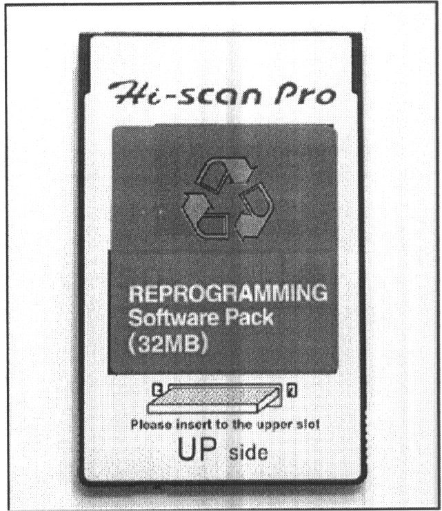 Using the new 32MB (MegaByte) reprogramming card (which has the required software pre-loaded), connect the Hi-Scan Pro to the vehicle's DLC connector.