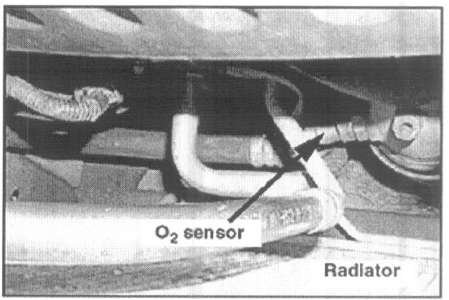 2. Using a 22 mm wrench, remove the 02 sensor afier disconnecting the sensor connector.