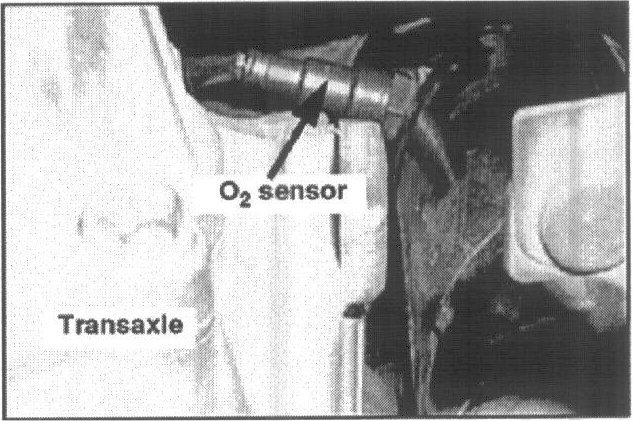 Install the new 02 sensor (P/N 39210-37165) and torque to 32 lb.-ft. Reconnect the sensor connector.