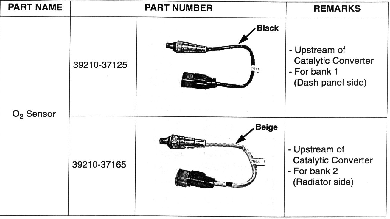Install the new 02 sensor (P/N 39210-37165) and torque to 32 ft-lb. Reconnect the sensor connector.