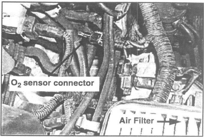 10. Lower the vehicle. Reconnect the disconnected 02 sensor connector. Install the removed air cleaner.