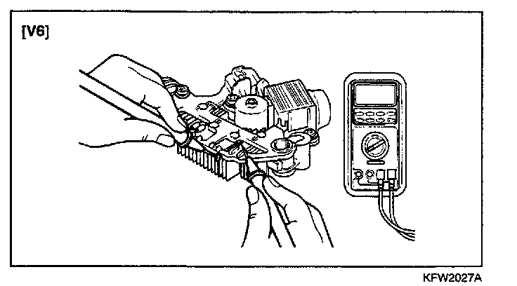 Check the three diodes for continuity by connecting an ohmmeter to both ends of each diode. Each diode should have continuity in only one direction. If continuity is present in both directions, the diode is defective and the heatsink assembly must be replaced.