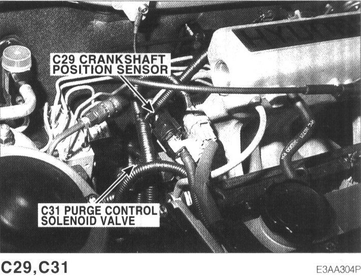 C29, C31 Crankshaft Position Sensor, Purge Control Solenoid Valve:
