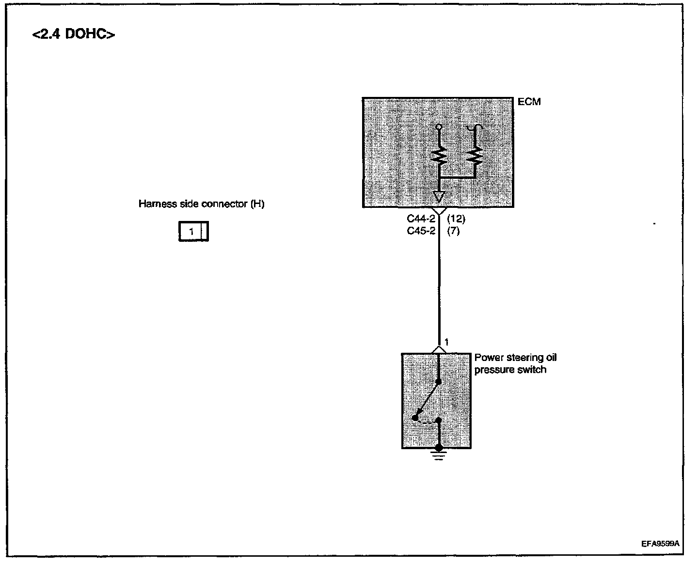 POWER STEERING PRESSURE (PSP) SWITCHThe power steering oil pressure switch senses the power steering load into low/high voltage and inputs it to ECM which then controls the idle speed control motor based on this signal.
