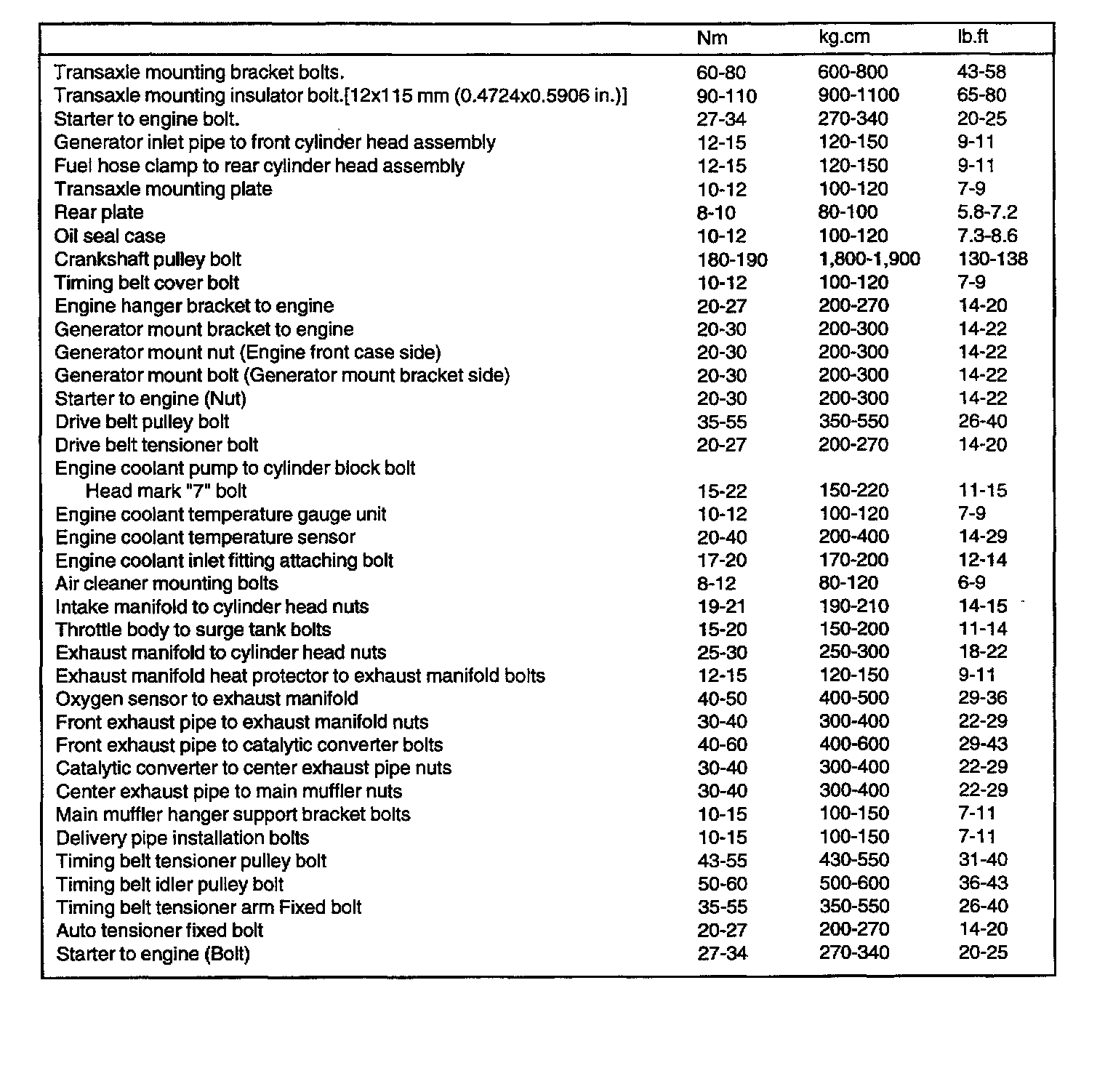 10-12 Nm (140-150 kg-cm, 10-11 lb-ft)