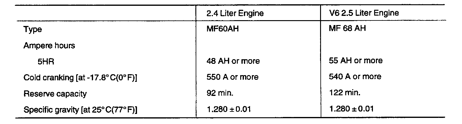 NOTE: COLD CRANKING AMPERAGE is the amperage a battery can deliver for 30 seconds and maintain a terminal voltage of 7.2 or greater at a specified temperature. RESERVE CAPACITY RATING is the amount of time a battery can deliver 25 A and maintain a minimum terminal voltage of 10.5 at 26.7 °C (80 °F).