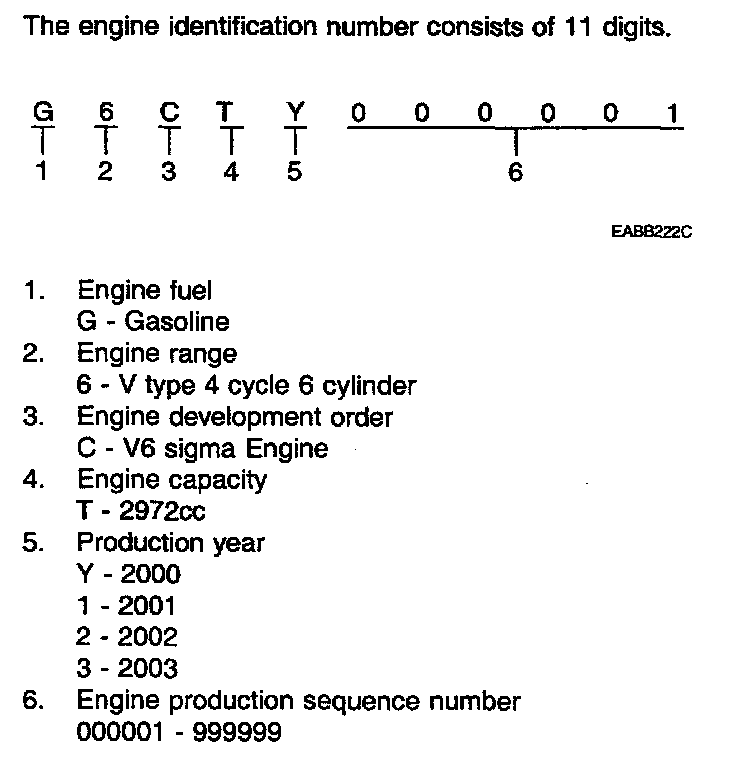 ENGINE IDENTIFICATION NUMBER LOCATIONThe engine identification number is stamped on the right front side of the top edge of the cylinder block.
