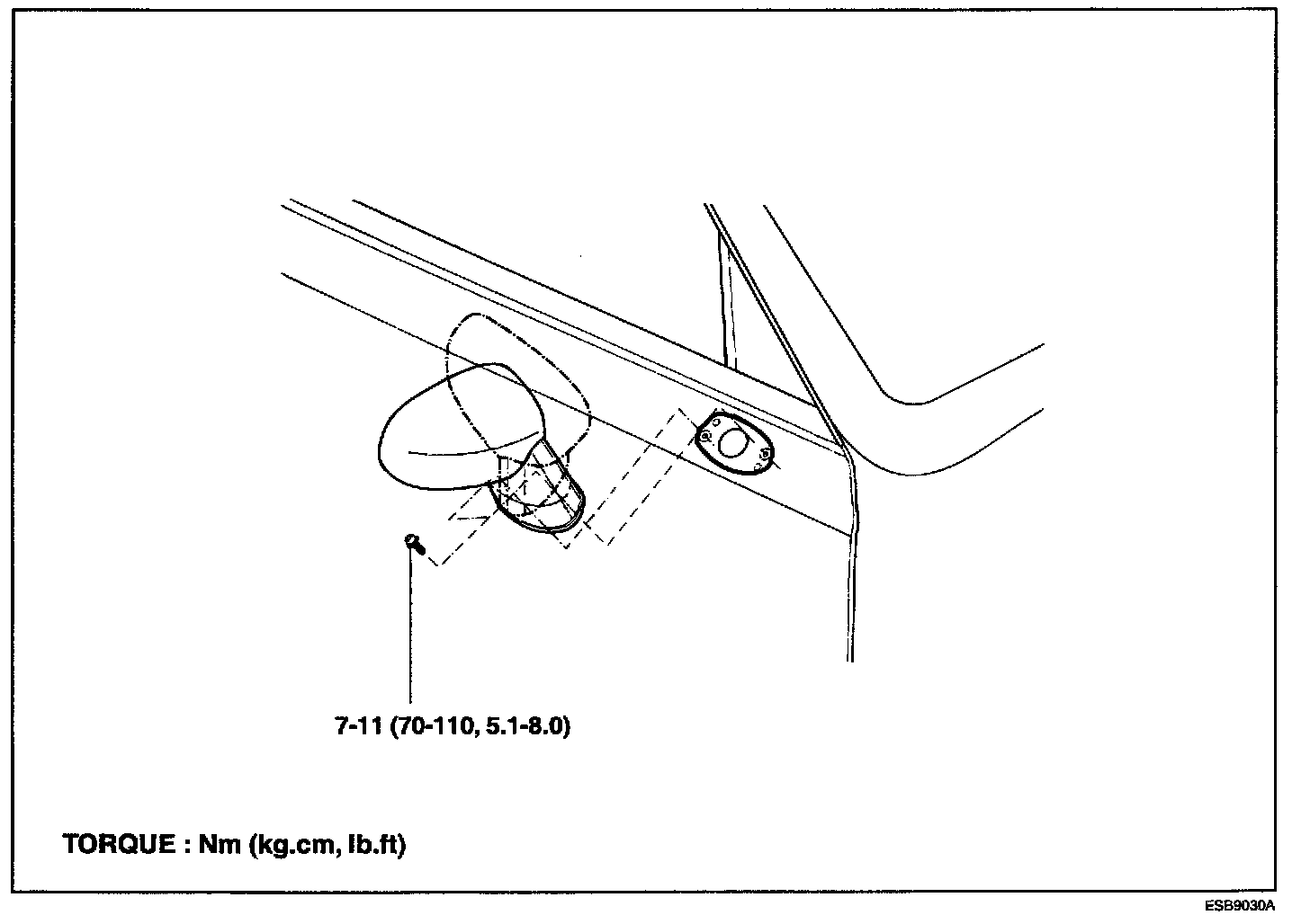 1. Insert a flat-bladed screwdriver between the outside rearview mirror holder and mirror assembly.
