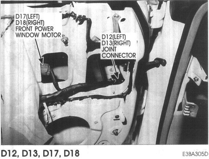D12, D13 Left & Right Joint Connector, D17, D18 Left & Right Front Power Window Motor: