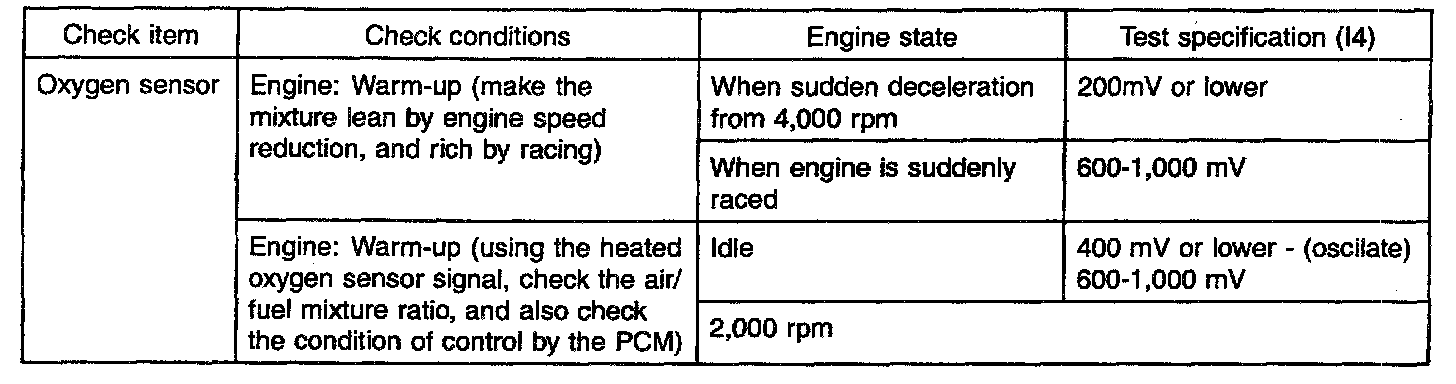 2. If the HO2S check results are normal, but the sensor output voltage is out of specification, check for the following items (related to air fuel ratio control system):