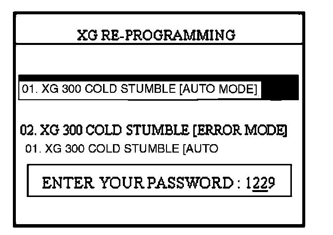 4. Select option "02. XG 300 COLD STUMBLE [ERROR MODE]" and press ENTER.