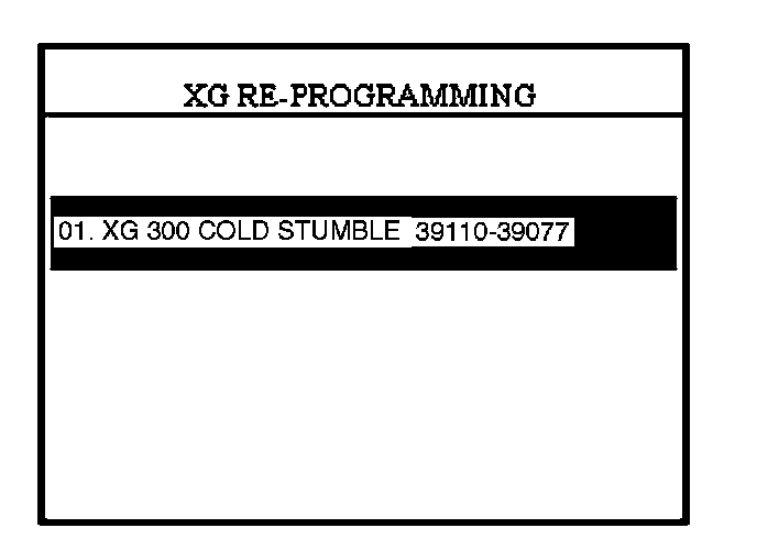 5. Select option "01. XG 300 COLD STUMBLE: 39110-39077" and press ENTER.