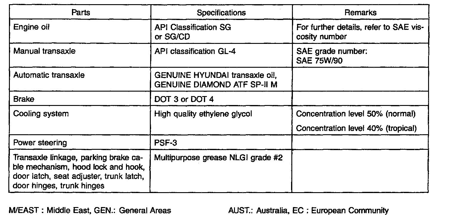 General Fluid Specifications